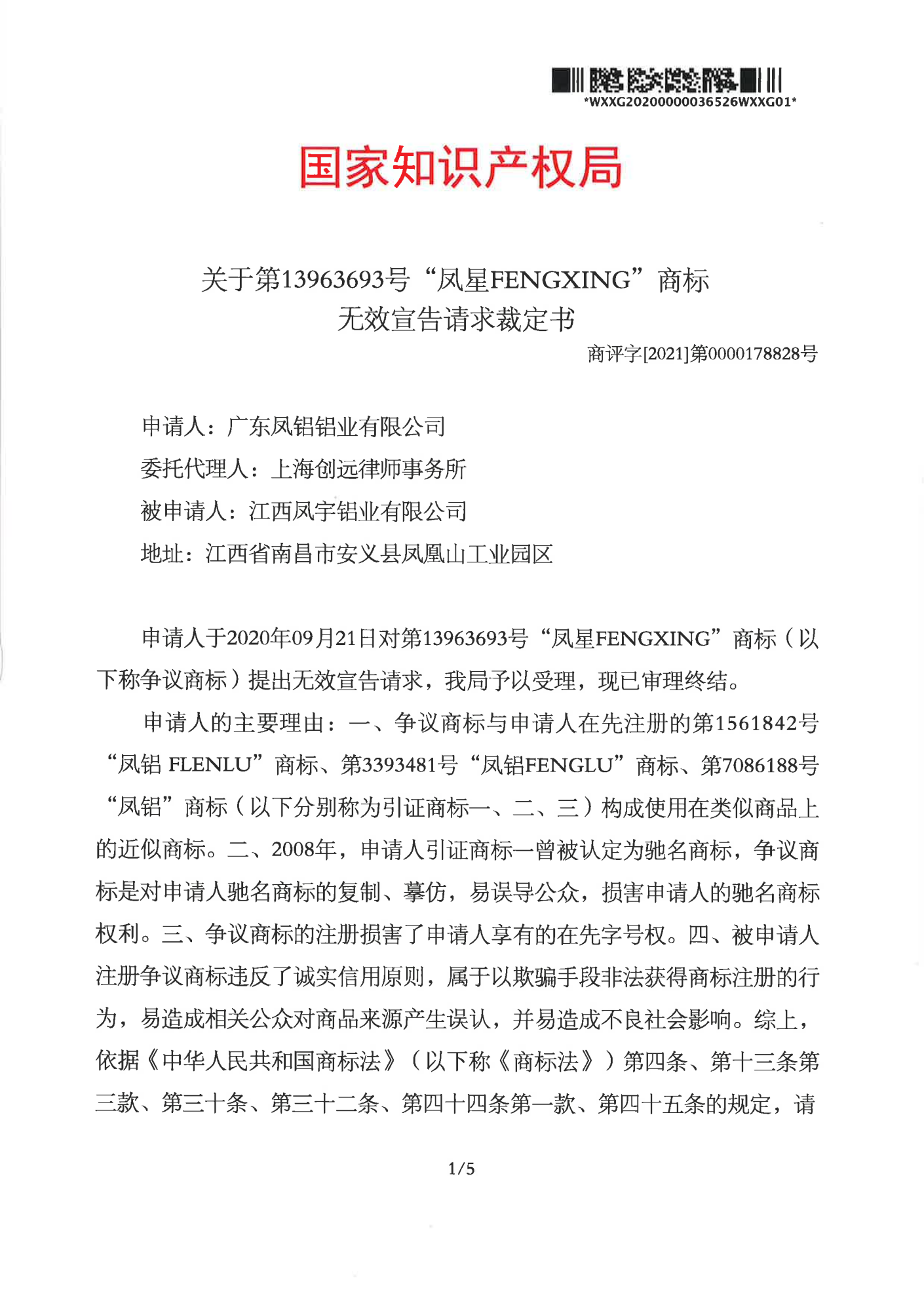 咸阳辉知队 | 国家知识产权局:“凤星”商标无效