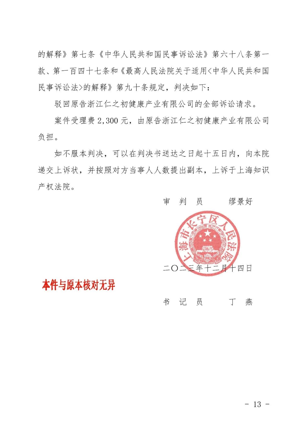 咸阳辉知胜诉佳讯 | “仁之初健康”著作权及不正当竞争纠纷案,法院:驳回全部诉讼请求!
