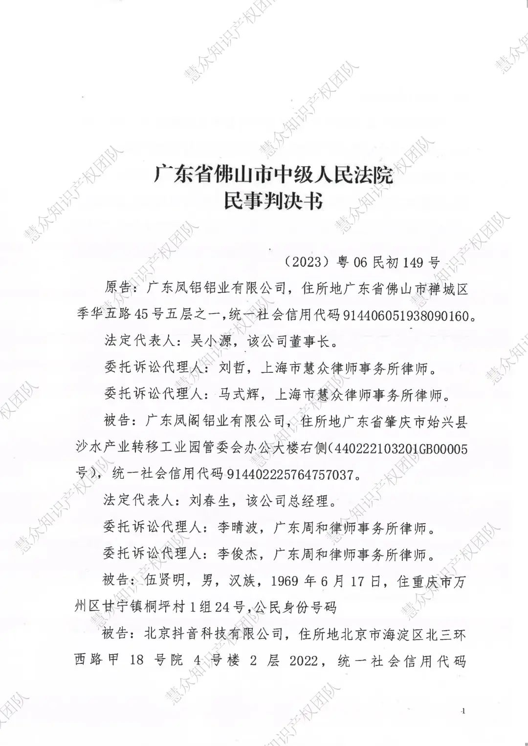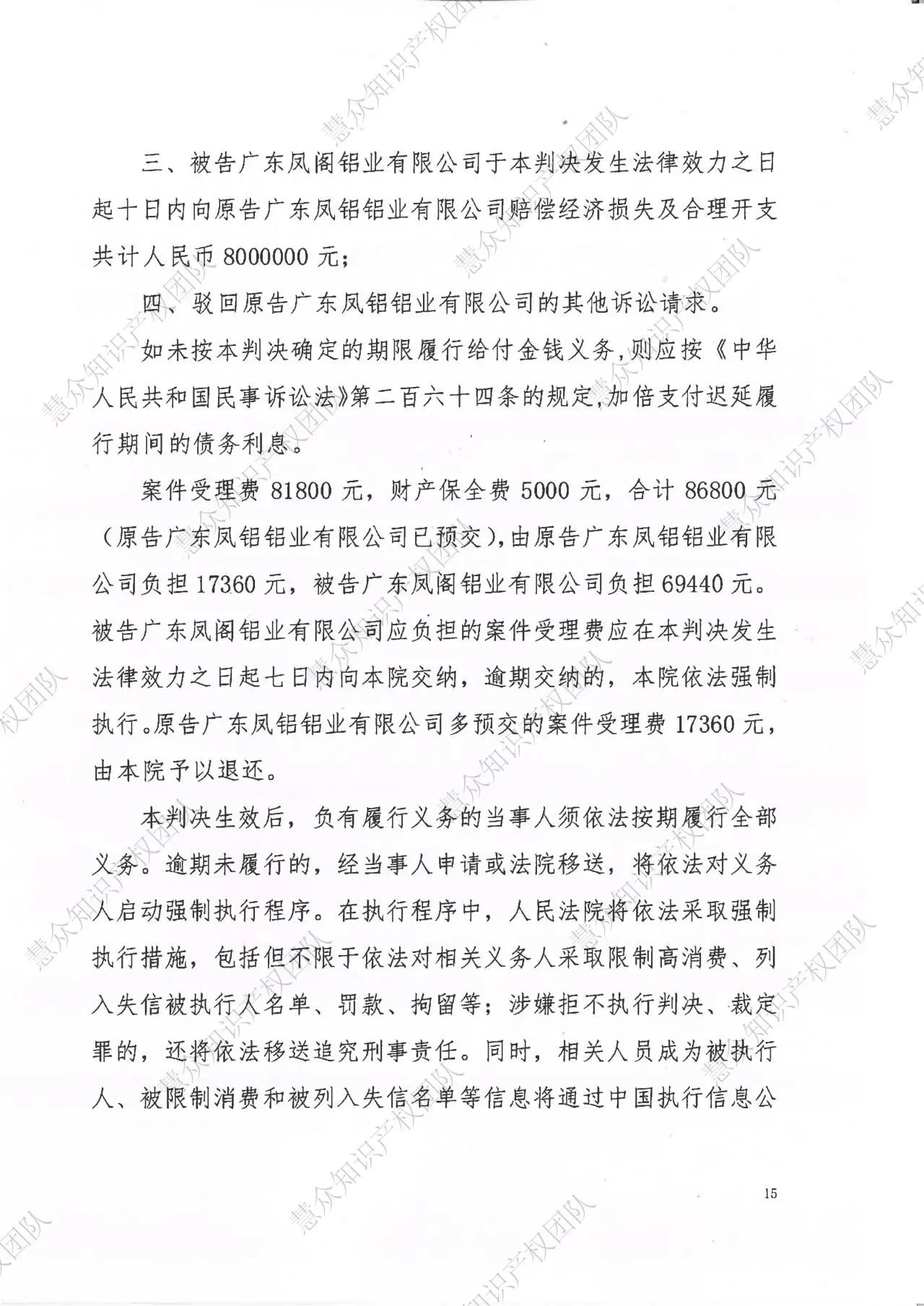 咸阳判赔800万!辉知队代理“凤铝”商标维权案胜诉